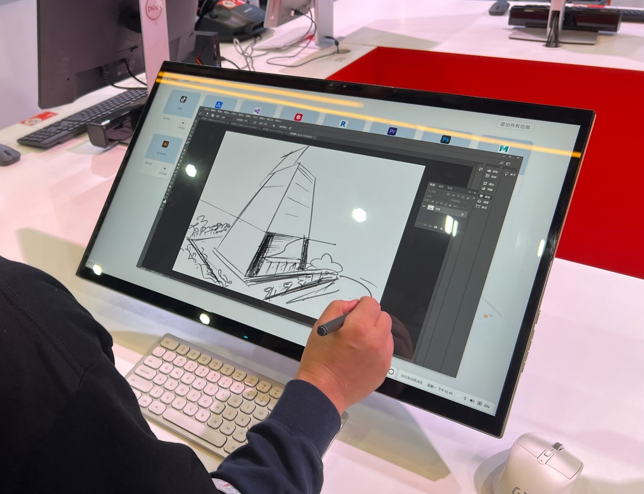 在云栖大会展区,观众已经可以对一体机进行初步体验:在一体机屏幕上,过去在 Windows、Linux、安卓或国产操作系统的 3D 渲染、视觉设计、编程环境、手机游戏等软件,10 多个演示应用图标聚集于一屏。用户无需切换系统,无需下载,即点即用。单应用经过适配,目前最高可使用 1024 核 CPU 和 8 块高性能 GPU。