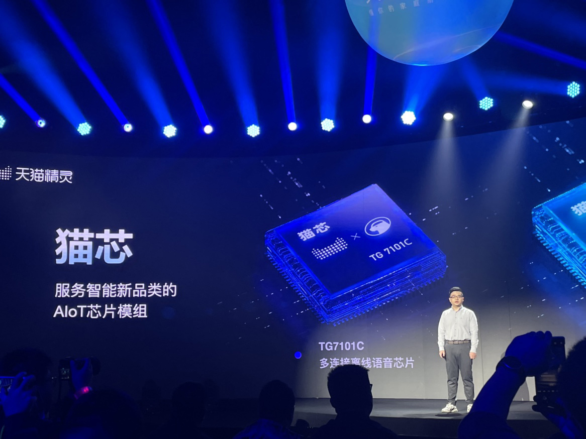 同时,在发布会上,天猫精灵还正式发布了自研 AIoT 芯片“猫芯”。