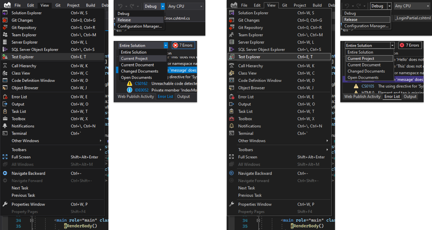 此外,微软发现深色主题已经取代浅色主题,成为 Visual Studio 开发者最流行的选择。因此,微软调整了整个 IDE 的颜色对比度,使设计更易于访问,特别是对于使用深色主题的人,其中的一个关键改进是高亮显示的边框。