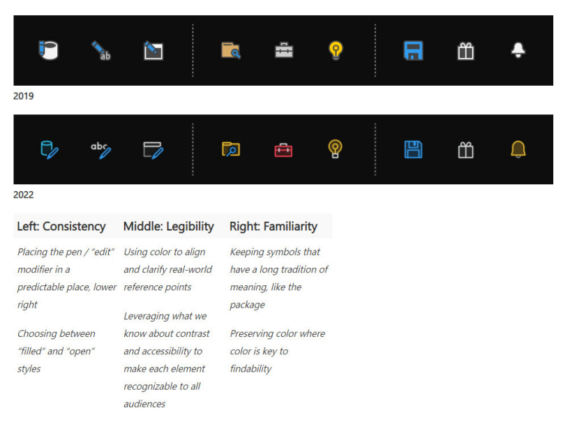 微软指出,其对 Visual Studio 界面进行改造的验收标准是一致性、易读性和熟悉性。这些措施包括将图标放置在正确的位置,使用颜色识别参考点,纠正对比度,并在熟悉的地方保留颜色和符号。