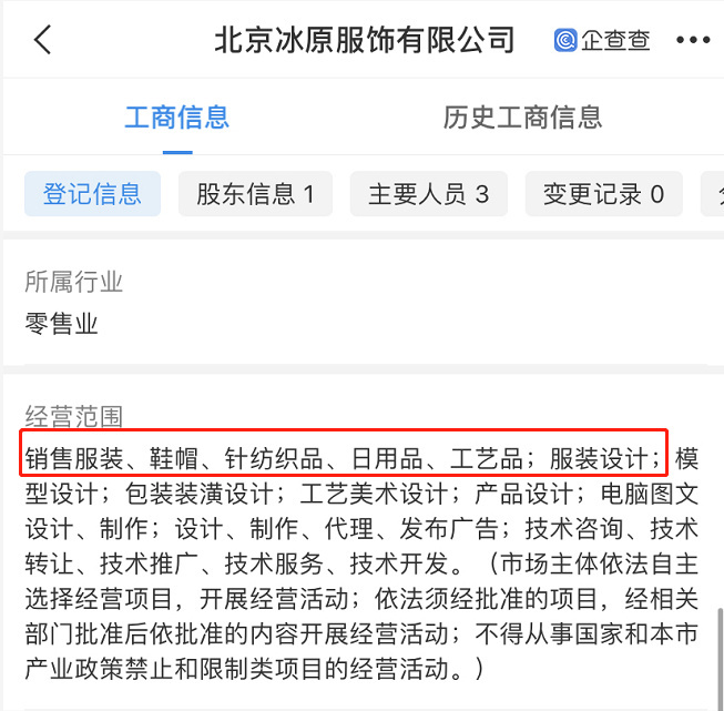 企查查 App 显示,今年 9 月,猿辅导关联公司对外投资成立北京冰原服饰有限公司。陈萌沧为该公司法定代表人,猿辅导创始人李勇为执行董事。