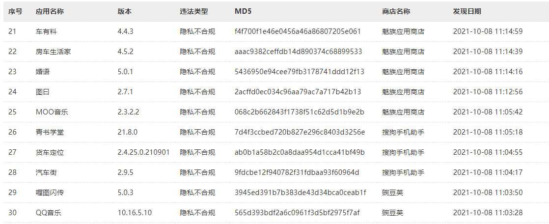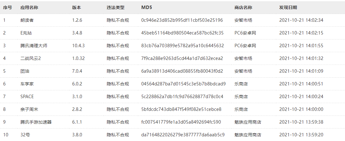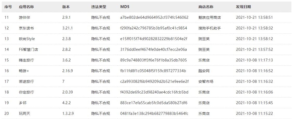 除此之外,之前被通报的 App 还有《QQ 音乐》《京东读书》等,详情如下。