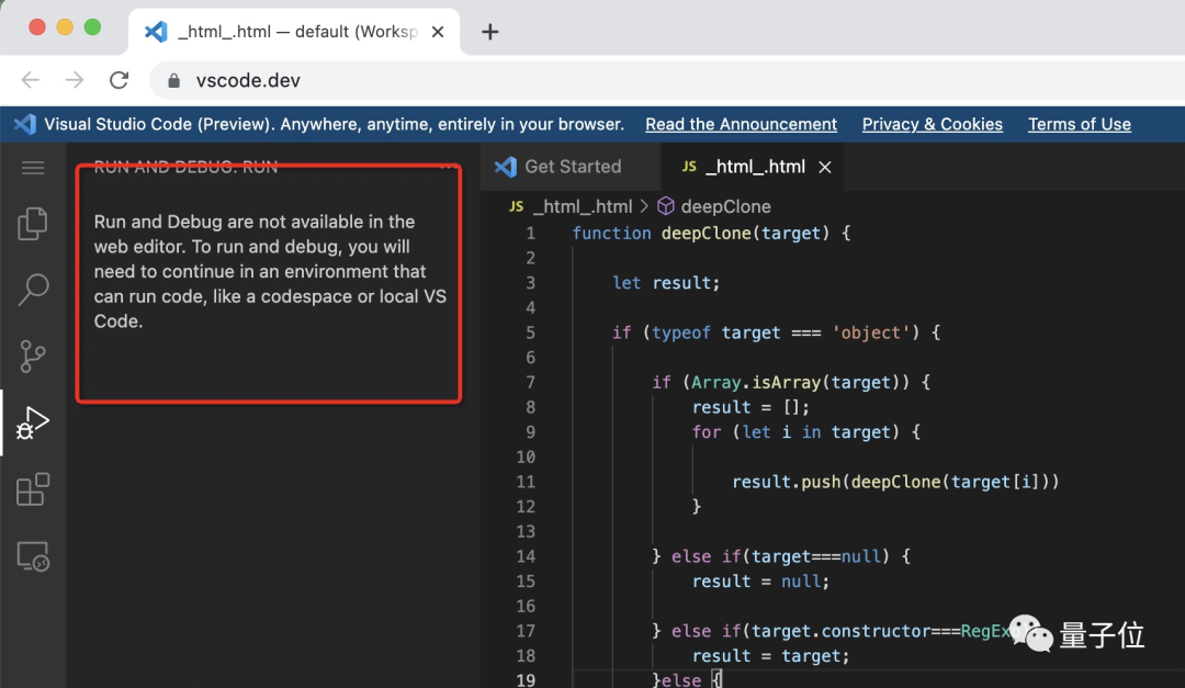 现在,这个 GitHub 在线编辑器进化成了完整的 VS Code 网页版编辑器,也就是这次微软正式发布的网页版 VS Code。