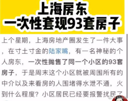 伴随着部分地区将试点房地产税的新闻,近日一则网传消息十分吸引眼球:上海房叔一次性抛售93套房产,持有28年、房价翻了100倍,如今套现4.5亿元,而且所有房源都在一个小区。