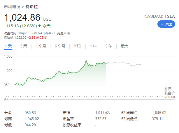 特斯拉此次股价大涨主要是受到了多个利好消息的推动,例如第三季度财报优秀、中国汽车工厂趋势向好,此外还接到汽车租赁公司 Hertz 的一笔大订单。