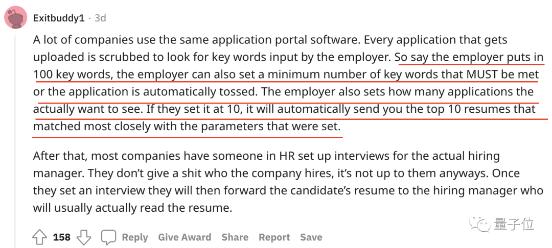 评论区中一位 HR 现身说法,他表示,有些送到自己这里的简历完全无法胜任正在招聘的职位,这些简历只是碰巧包含了一些“HR 必点”或这项工作必须的“热词”。