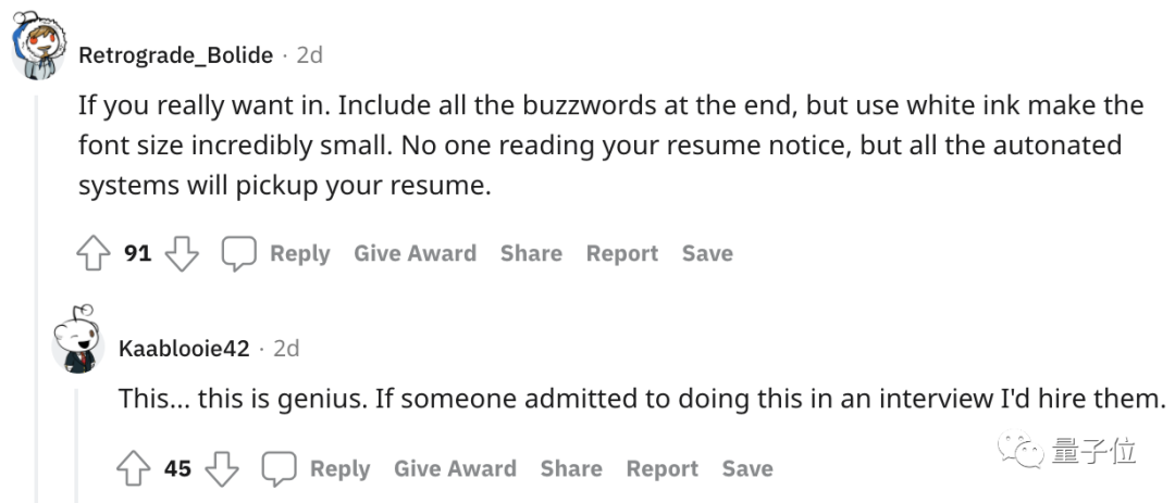所以,针对这种更在意关键词而非内容的机筛,评论区出现了一条天才提议: