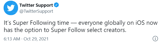 Twitter 官方表示,超级关注功能未来也将向 Android 用户开放。