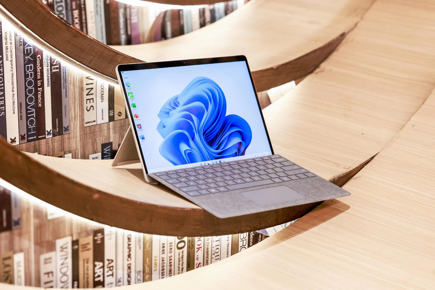 Surface Pro 8 采用窄边框设计的 13 英寸 PixelSense Flow 高分辨率触控屏,可配合 Surface 超薄触控笔。Surface Pro 8 内置了定制 Microsoft G6 处理器,能够通过 Surface 超薄触控笔产生书写反馈。Surface 超薄触控笔可以存放于 Surface Pro 特制版专业键盘盖中,并自动充电。