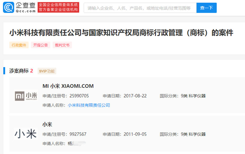 11 月 3 日消息,近日,小米科技有限责任公司与国家知识产权局其他一审行政判决书公开。