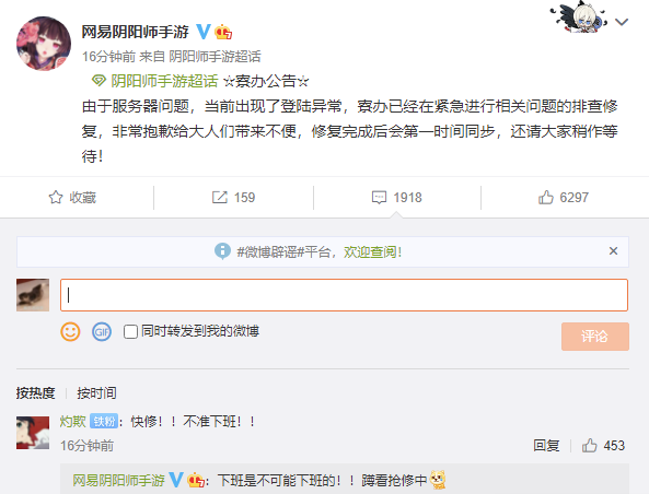 11 月 3 日消息,今日晚间,大量网友反映网易旗下多款游戏出现网络故障,导致无法登录和断连。网易旗下的第五人格游戏官方微博回应称,服务器出现异常,导致无法登录游戏,正在紧急排查和修复。随后在评论中,第五人格官方声称已修复完成。