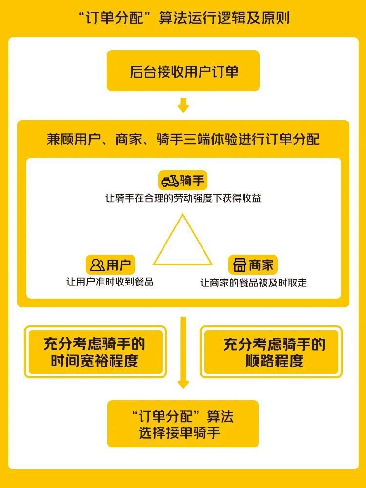 据IT之家了解,一个订单意味着三端需求:用户希望早点吃上饭、商家希望一出餐就有骑手取走、骑手希望接到的都是顺路的订单。在综合三端体验前提下,“订单分配”算法会选择时间更宽裕、更顺路的骑手进行订单配送,让骑手在合理的劳动强度下获得更多收入。