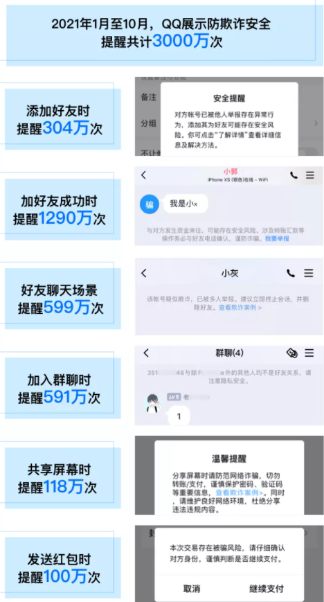 腾讯表示,QQ 安全安全团队对欺诈治理情况进行了总结,对于设计欺诈相关行为的账号进行严厉打击,1 至 10 月,共计处置账号 495 万。