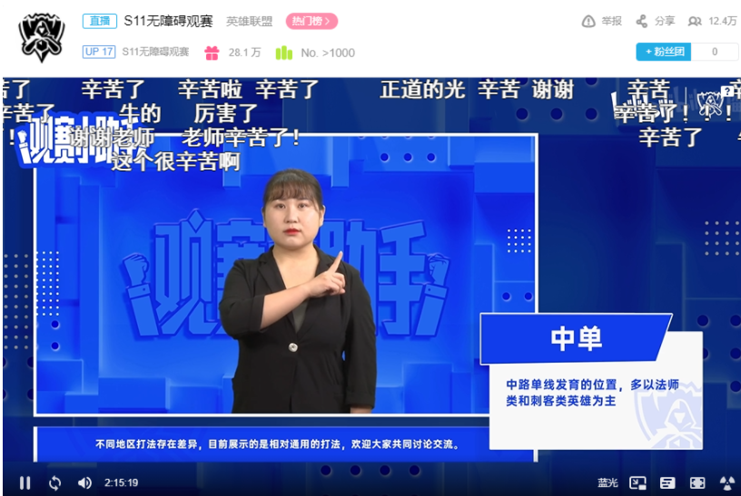 11 月 7 日消息,据B站官方微博,在英雄联盟 S11 全球总决赛期间,B站上线了首个无障碍观赛直播间,为听障人群提供手语翻译。