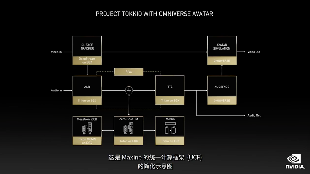 它是 NVIDIA 一系列先进 AI 技术的集大成者,将 Metropolis 的感知能力、Riva 的语音识别能力、Merlin 的推荐能力、Omniverse 的动画渲染能力等交汇于一体。