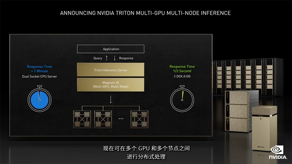 今日,NVIDIA 推出多节点分布式推理功能的 NVIDIA Triton 推理服务器,以及 NVIDIA A2 Tensor Core GPU 加速器。