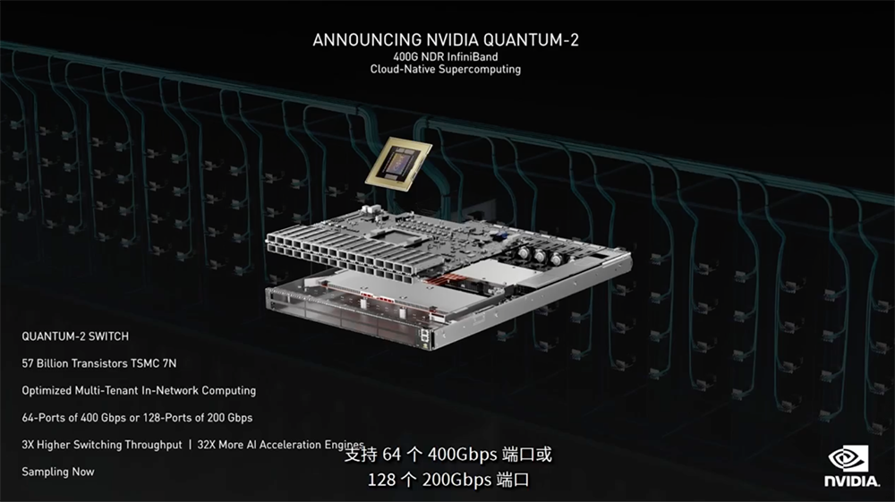 此次 GTC 期间,NVIDIA 还宣布了下一代 NVIDIA Quantum-2 平台,可进行云原生超级计算。