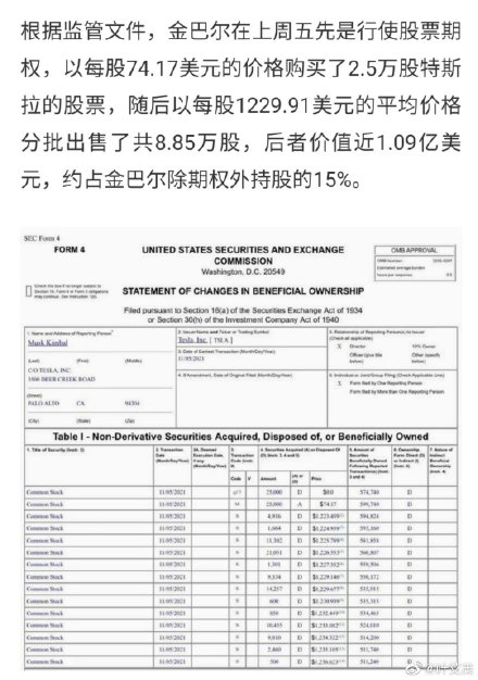 据界面新闻援引《华尔街日报》11月9日报道,Kimbal Musk在上周五通过行使特斯拉股票期权获利近1.1亿美元。在他进行交易后,他的哥哥埃隆.马斯克(Elon Musk)上周末询问Twitter用户他是否应该出售一大笔特斯拉股份。Kimbal Musk是特斯拉董事会成员之一。上周五Kimbal Musk行使他的特斯拉股票期权,以每股74.17美元的价格购入2.5万股特斯拉股票,随后立即分批抛售,卖出价格在1223美元/股至1236美元/股不等,套现约1.088亿美元。目前,Kimbal Musk仍持有超过51.1万股特斯拉股票,按照周一收盘价计算,这些股票价值约5.94亿美元。