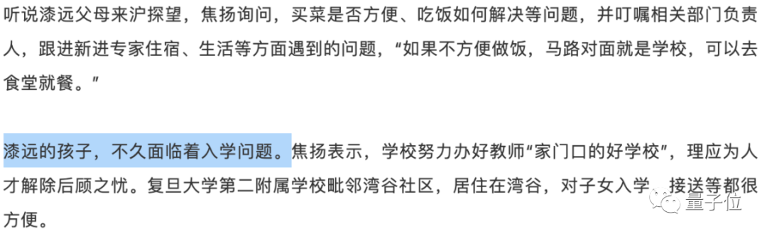 据复旦大学公众号报道,漆远也在考虑子女入学这样的问题。