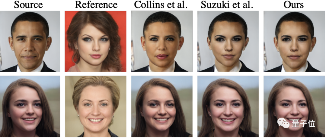 Collins 等人的方法没有准确地转移细节属性,Suzuki 等人在姿势不匹配时产生的图像不够真实。