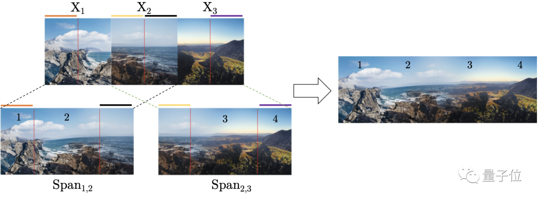作者通过“编织”两幅图像的混合(span)生成全景图,方法如图所示: