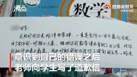 广西柳州。一位老师发现学生的数学课本不见了,就批评了其粗心大意,回到办公室才发现是自己错拿了学生的课本,意识到自己的错误之后就向学生写了道歉信。网友:这位老师太好了~