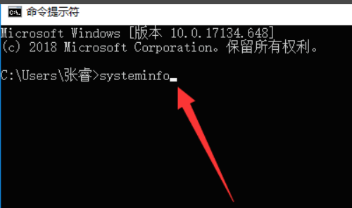 3、打开命令提示符后不要乱点鼠标,直接输入“systeminfo”。如图所示,只输入systeminfo不要输入我打的上引号下引号和句号,最后点击回车键(enter)运行这个命令。