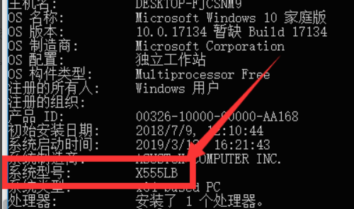 4、接着在出现的一大堆系统信息中找到系统型号,这个X555LB就是主板型号了。