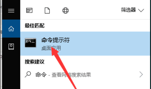2、鼠标左键点击搜索到的命令提示符来打开这个程序。