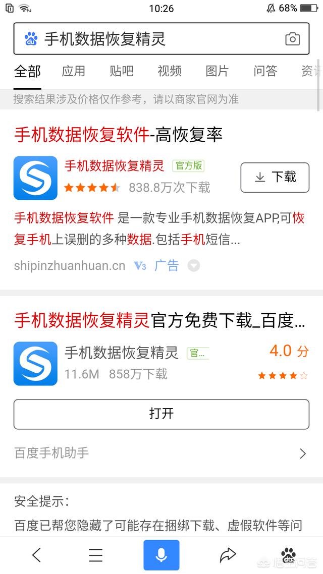 这种方法就是在手机浏览器里搜索下载“手机数据恢复精灵”,利用手机数据恢复精灵这款极为专业的恢复软件进行恢复哦。