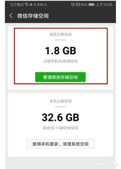 微信是一个空间“大户”,所有的聊天信息、浏览过的内容都会保存到本地,动辄占用10几个G的空间,我们可以在微信存储空间中,找到【管理微信存储空间】的按钮,直接尽进行清理。