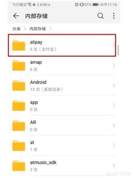 这个是支付宝的文件夹,经常使用支付宝会产生大量的垃圾文件,一些重要的数据存放在阿里云端,这个文件夹,我们完全可以删除。