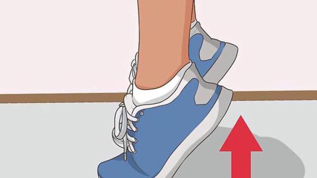 2、提起脚后跟用前脚掌站立,然后放下脚跟。