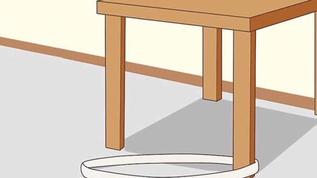 1、找一个稳定的四条腿的椅子,用弹力绳绑在其中一条腿上。
