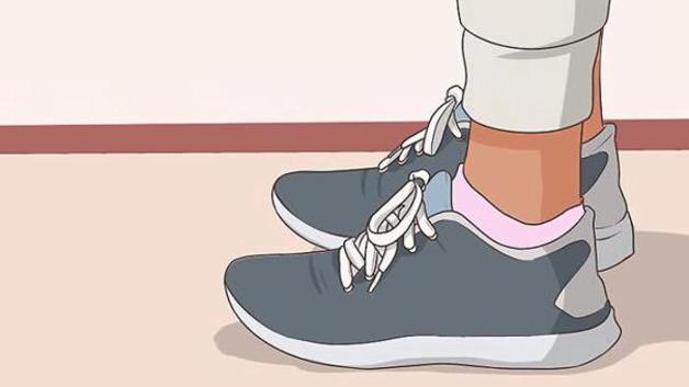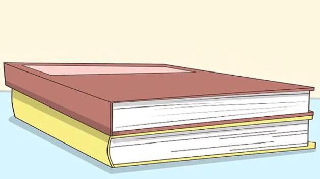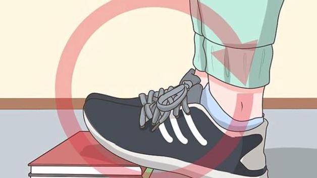 2、前脚掌站上去,确保脚跟下沉时可以着地,如果书太厚脚跟挨不到地面,换本薄一点的。