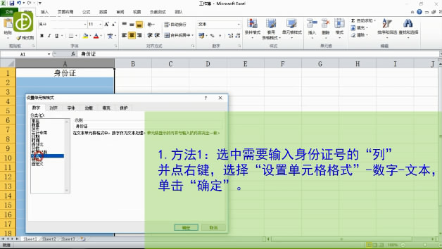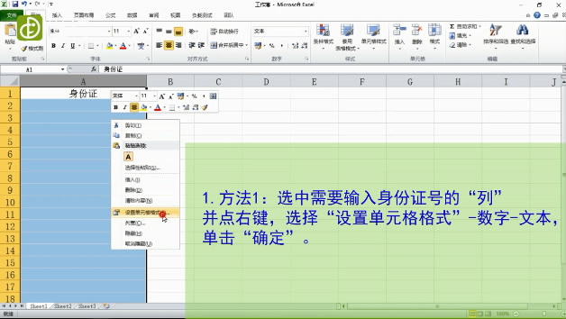 我们在运用excel制作表格的时候,有时候输入身份证号码到单元格里面,就会发现显示的是乱码或者其它的数字。下面就教大家在excel表格中怎样正确的输入身份证号码。