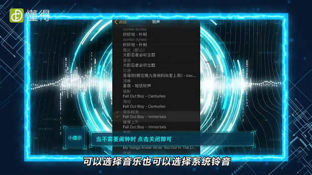 完成后再对铃声进行设定,可以选择音乐也可以选择系统铃声。设定完成后选择存储即可。