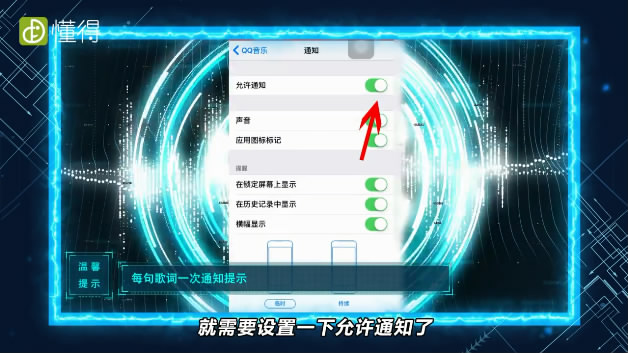 如果QQ音乐没有被允许通知的话,就需要设置一下【允许通知】了。