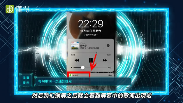 然后我们锁屏之后就会看到屏幕中的歌词出现啦。