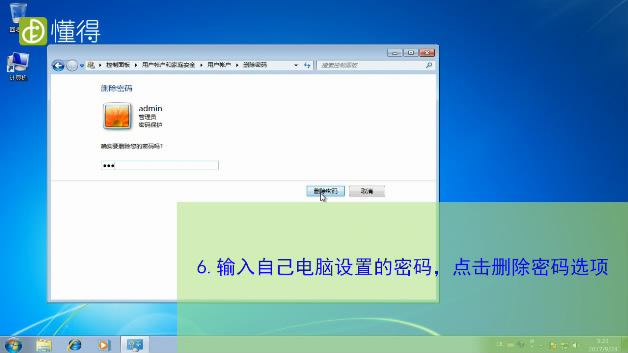 输入自己电脑设置的密码,点击【删除密码】选项。这样就成功删除了win7电脑开机密码了。