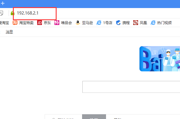 1、在电脑的浏览器地址栏中输入192.168.2.1,按回车键。