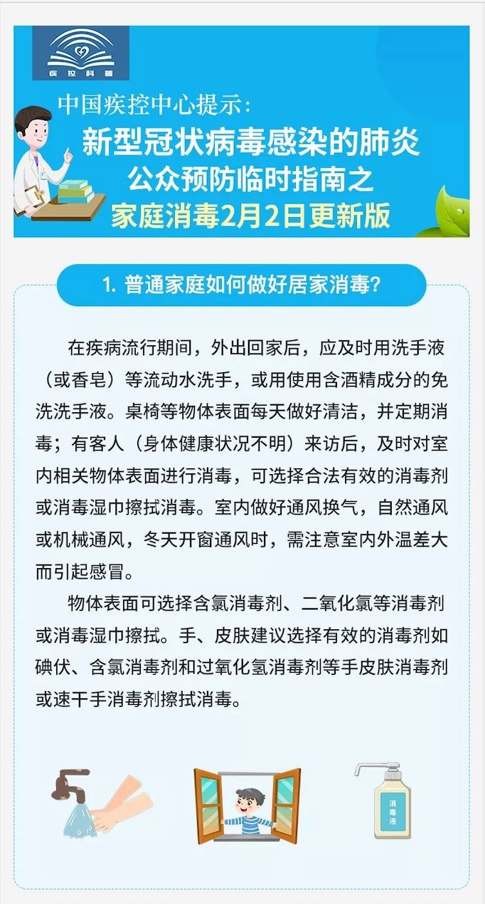 新型冠状病毒感染的肺炎公众预防临时指南之家庭消毒2月2日更新版