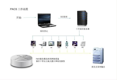 放射信息管理系统(Radioiogy information system, RIS),是优化医院放射科工作流程管理的软件系统,一个典型的流程包括登记预约、就诊、产生影像、出片、报告、审核、发片等环节。
