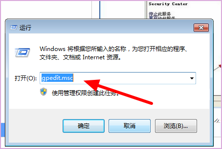 2、然后在弹出来的窗口中点击输入“gpedit.msc”,回车确定。