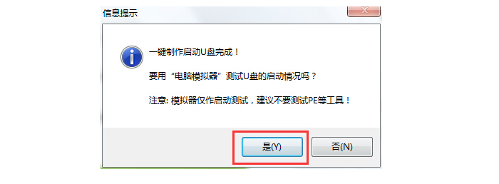 4、完成写入之后,在弹出的信息提示窗口中,点击“是(Y)”进入模拟电脑。如下图所示