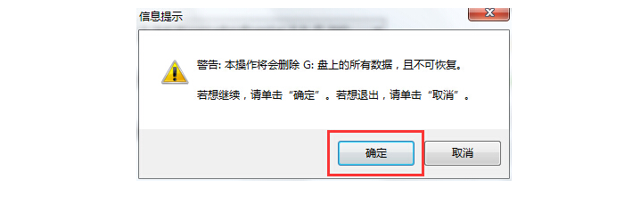 2、在弹出的信息提示窗口中,点击“确定”进入下一步操作。如下图所示