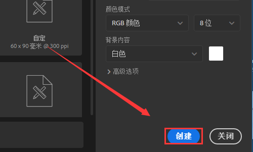 3.自定义图层的宽度和高度以及背景颜色,然后点击创建。