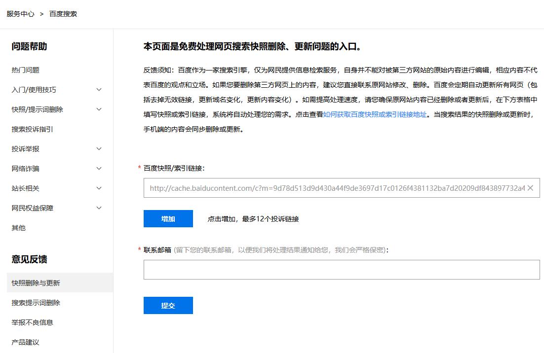 4)填写个人邮箱,提交即可(如果经常更新百度快照,建议更换邮箱,以免影响投诉速度)