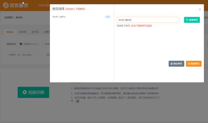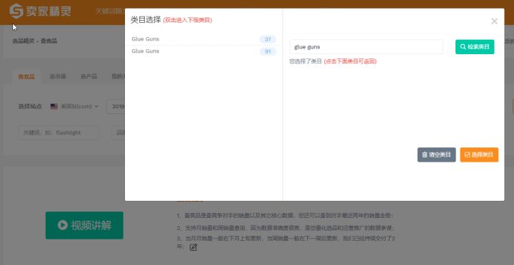 首先,我们在用卖家精灵的关键词挖掘去找到 “book light” 和 “hot glue gun” 这两个词的月搜索数据,然后再去查竞品去找到对应类目的产品数量,如图所示: