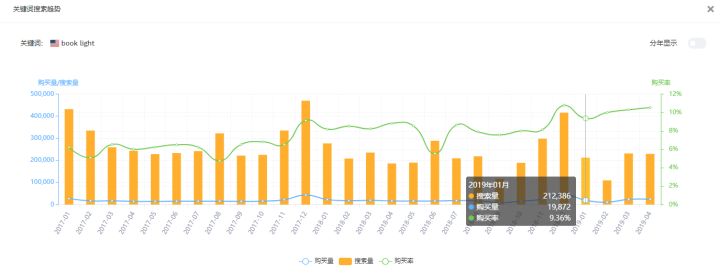 显然,“hot glue gun” 的竞争热度高于 “book light”, 如果要做二选一的话,那么可以优选 “hot glue gun"。